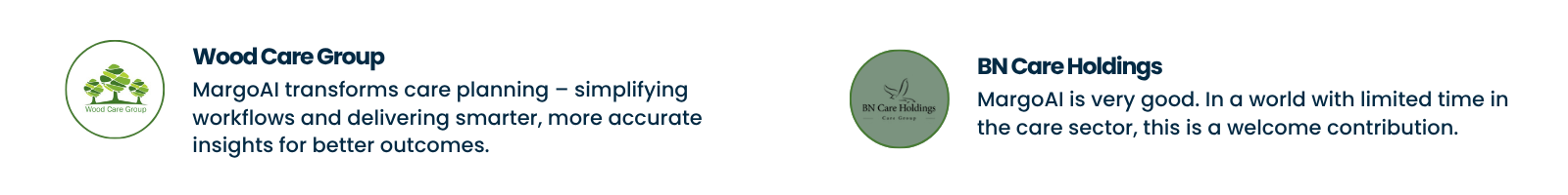 MargoAI Enhance instantly improves the grammar, structure and tone of written care notes. It ensures consistency across all teams, helping every staff member produce high-quality records that are easy to understand and audit-ready.